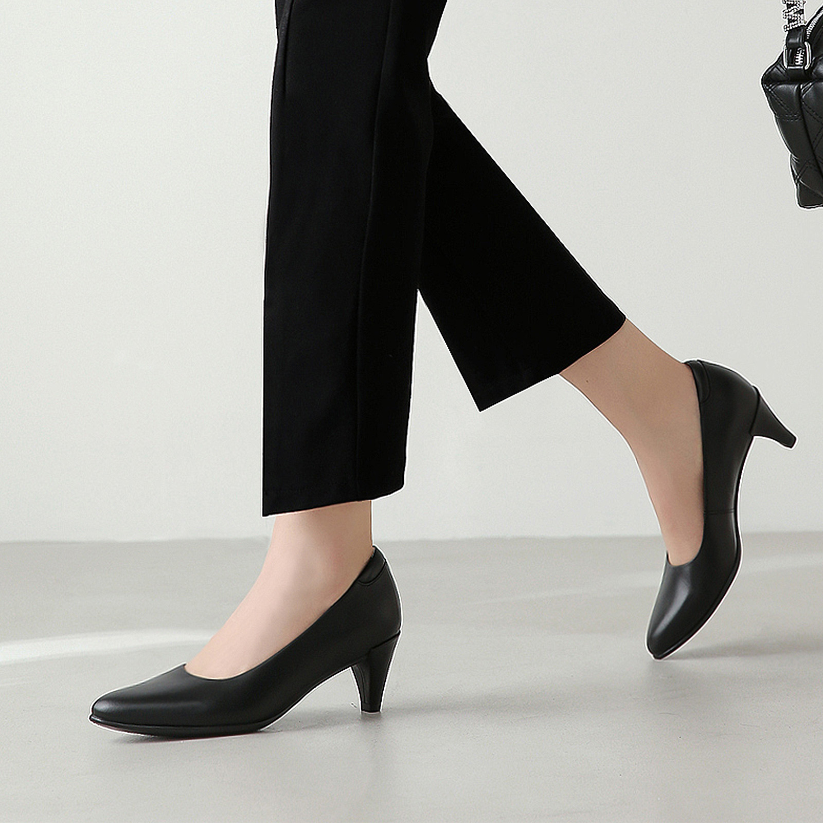 商務正裝通(tōng)勤牛皮小(xiǎo)粗跟女(nǚ)鞋W39803