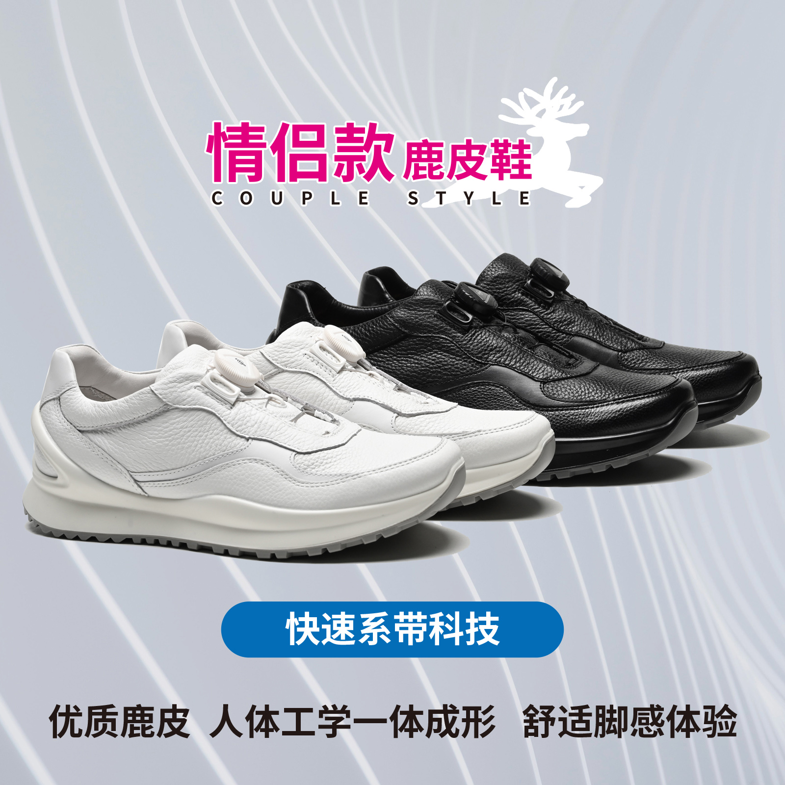 會(huì)呼吸的(de)鹿皮鞋舒适優質免系帶情侶款休閑鞋M69930AM69930A